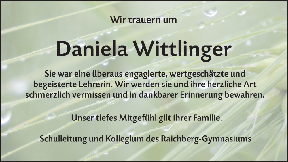 Hier finden Sie alle Traueranzeigen aus der Zeitung, die bisher für Daniela Wittlinger erschienen sind. Weitere Traueranzeigen, die in der Zeitung erscheinen, werden hier ebenfalls aufgelistet