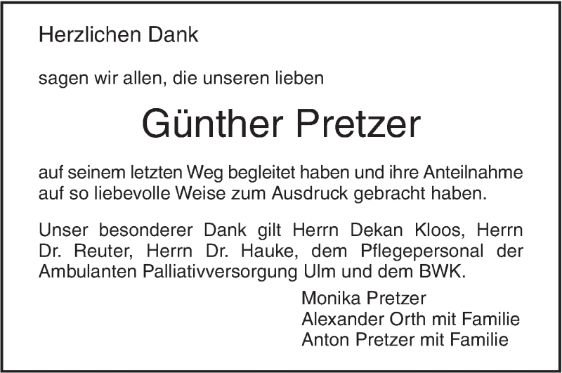 Hier finden Sie alle Traueranzeigen aus der Zeitung, die bisher für Günther Pretzer erschienen sind. Weitere Traueranzeigen, die in der Zeitung erscheinen, werden hier ebenfalls aufgelistet