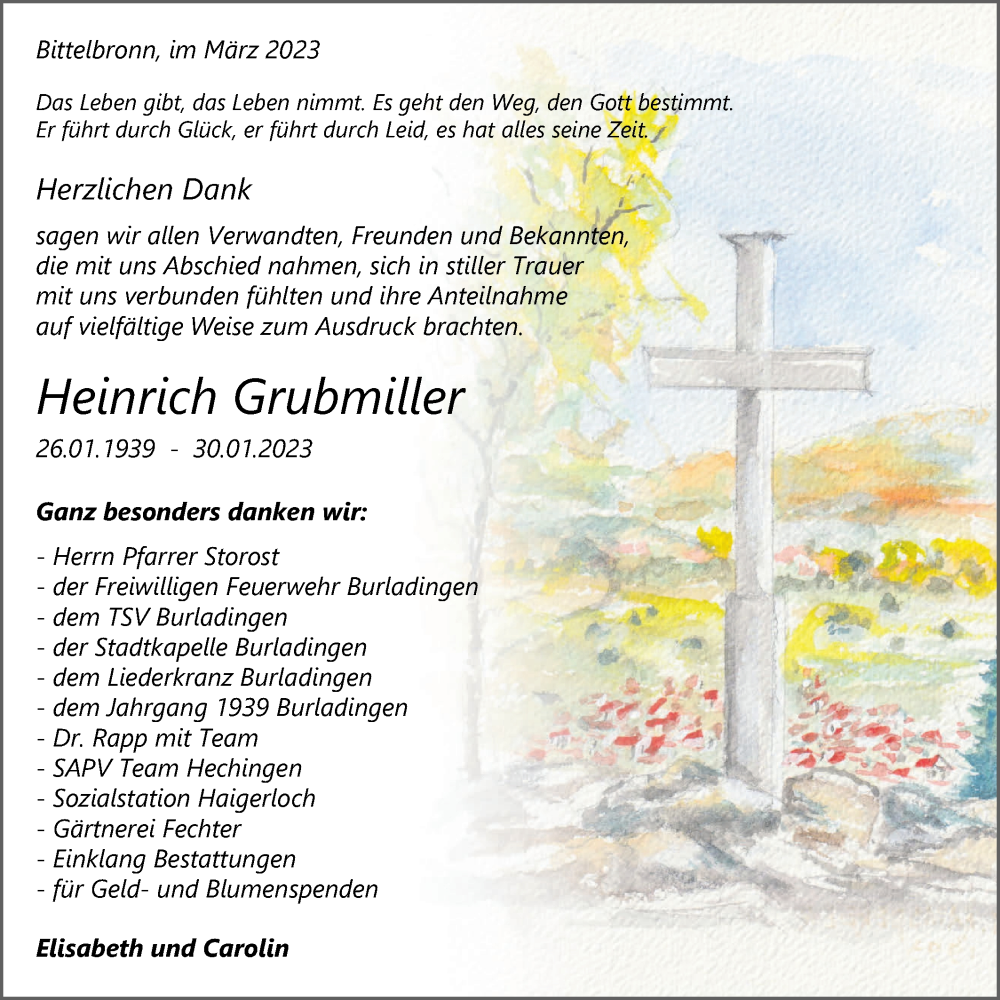 Hier finden Sie alle Traueranzeigen aus der Zeitung, die bisher für Heinrich Grubmiller erschienen sind. Weitere Traueranzeigen, die in der Zeitung erscheinen, werden hier ebenfalls aufgelistet