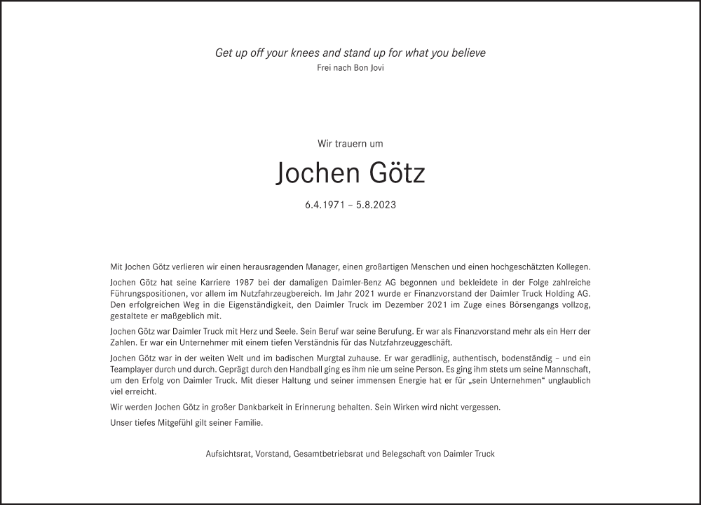 Hier finden Sie alle Traueranzeigen aus der Zeitung, die bisher für Jochen Götz erschienen sind. Weitere Traueranzeigen, die in der Zeitung erscheinen, werden hier ebenfalls aufgelistet