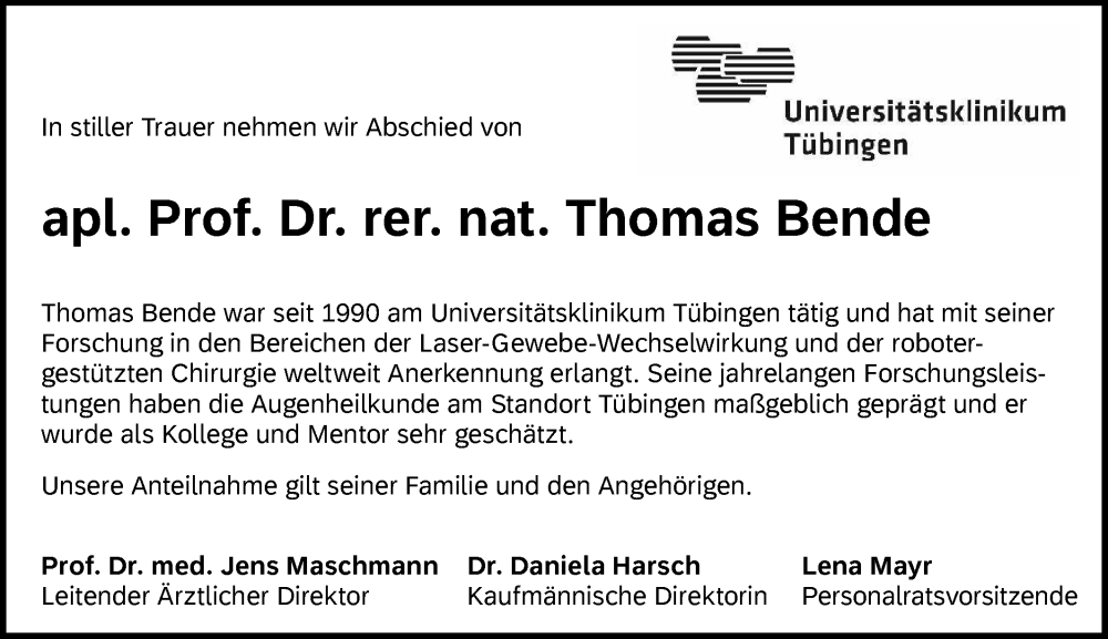 Hier finden Sie alle Traueranzeigen aus der Zeitung, die bisher für Thomas Bende erschienen sind. Weitere Traueranzeigen, die in der Zeitung erscheinen, werden hier ebenfalls aufgelistet
