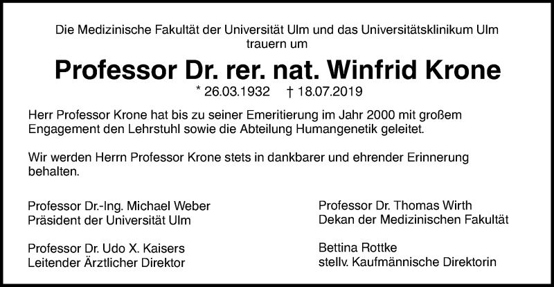 Hier finden Sie alle Traueranzeigen aus der Zeitung, die bisher für Winfrid Krone erschienen sind. Weitere Traueranzeigen, die in der Zeitung erscheinen, werden hier ebenfalls aufgelistet
